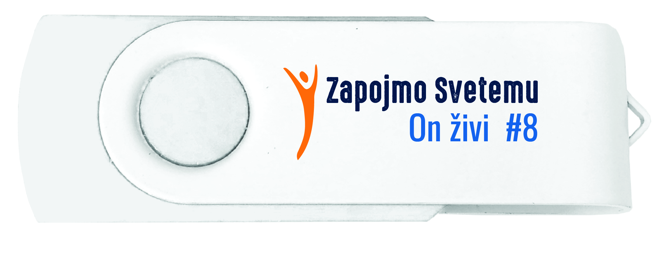 USB ključ Zapojmo Svetemu z novimi 12 pesmimi (razne slavilne pesmi ter pesmi v čast Mariji, svetemu Jožefu in Svetemu Duhu) iz otroške bogoslužne pesmarice On živi! za otroke. Pesmi so posnete z igrivimi aranžmaji in veselimi otroškimi glasovi.