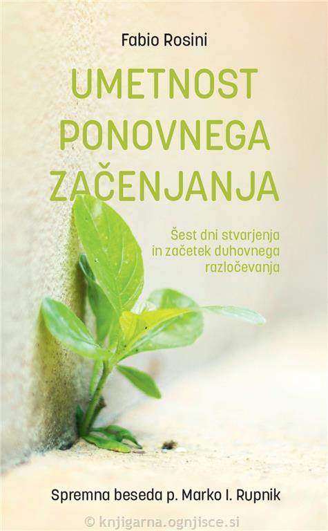 V življenju moramo velikokrat začenjati znova. To pa ni vedno preprosto, včasih se nam celo zdi nemogoče, zlasti po hudih neuspehih ali težkih preizkušnjah. Duhovnik Fabio Rosini nam v svoji knjigi ponovno začenjanje predstavlja kot ‘umetnost’ duhovnega prenavljanja, ki se je moramo učiti ponižno, vztrajno in z nogami na trdnih tleh svoje resničnosti. V to umetnost nas uvaja na osnovi svetopisemskega poročila o stvarjenju. Pisec nam šestdnevno stvarjenje predstavlja kot pot k resnični življenjski prenovi. Da bi to dosegli, moramo najprej priznati Božje danosti (prvi dan), sprejeti svoje prednostne naloge (drugi dan) in omejitve (tretji dan), se naučiti razločevati med dobrimi navdihi in zlimi sugestijami (četrti dan), prepoznavati Božje blagoslove in milosti (peti dan), sprejemati ponižanja in jih obrniti v svoj prid (šesti dan).