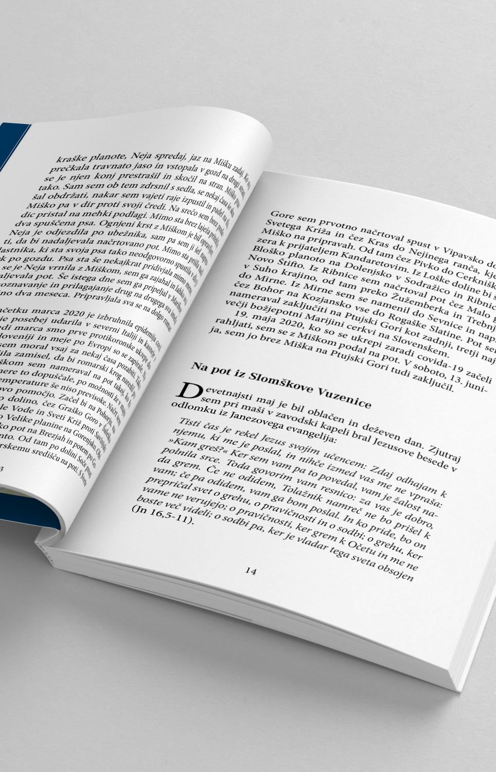 Avtor knjige je svojo zaobljubljeno pot sprva načrtoval od Ogleja v Italiji do Santiaga de Compostela v Španiji. Ker mu je načrte presekala epidemija, se je s konjem odpravil na pot po Sloveniji. 19. maja 2020, ko so se ukrepi zaradi covida-19 začeli rahljati, je z Miškom odrinil iz Vuzenice. 13. junija je brez konja pot zaključil na Ptujski Gori.