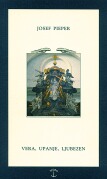 V tej knjigi je govor o treh teoloških krepostih. Z vsemi doslej natisnjenimi razpravami (tudi onimi o štirih naravnih krepostih) nam Pieper odpira »jasen pogled v neoslabljeni, za človeka vedno aktualni pomen kreposti, ki se »opira na tisočletno izročilo krščanske misli o človeku«. Po njem krepost »ni obrzdana ‘urejenost’ in ‘pridnost’ filistra, temveč bivanjsko povišanje človeške osebe … je »skrajnost tistega, kar človek mora biti: izpolnitev človekove zmogljivosti … je človekova usmeritev k najvišji uresničitvi njegovega bitja.« V knjigi je govor o veliki trojici vere, upanja, ljubezni, po kateri človek presega samega sebe– ker mu je darovana. Vendar napreduje v moči štirih naravnih kreposti, ki so ji za temelj. Z vsemi razpravami o krepostih (v naši zbirki povezanimi v tri snopiče) Pieper obnavlja in aktualizira klasično zahodno misel o človeku in doseže v zadnji (o ljubezni) vrtoglave višine.