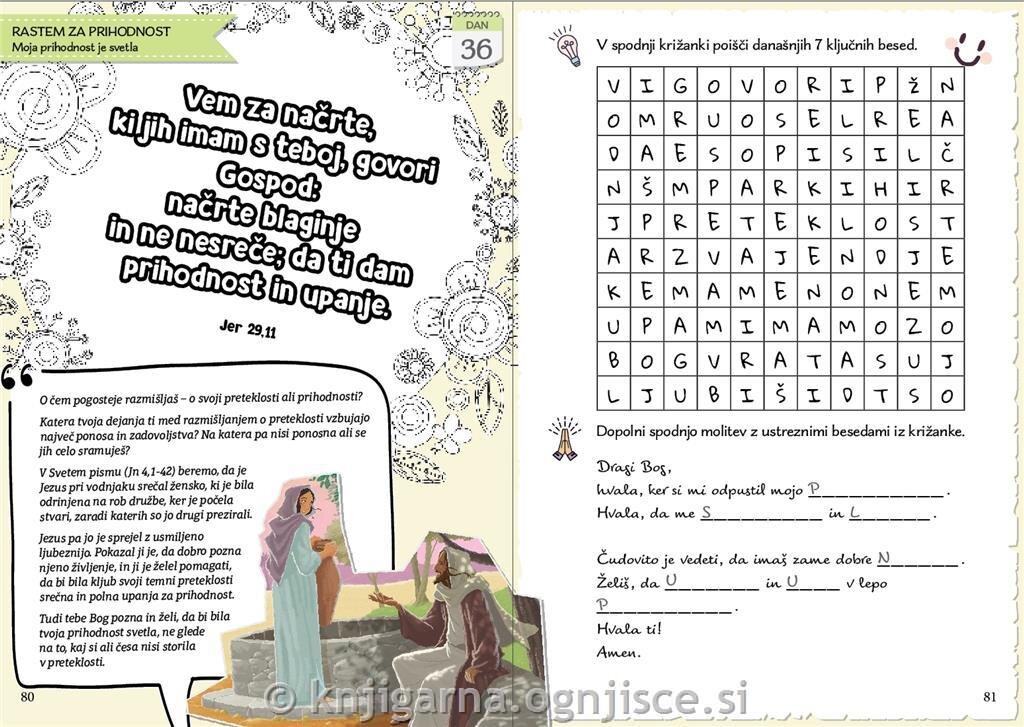 “Svetopisemski dnevnik za dekleta ti bo s svojimi štiridesetimi izzivi pomagal spoznavati Sveto pismo in Boga, pa tudi tvojo edinstvenost, vrednost, poklicanost in sposobnosti.