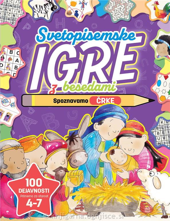 Raziskujte biblijske zgodbe ob spoznavanju črk in besed. To je odličen način, da otroci razvijajo svoje jezikovne spretnosti in hkrati spoznavajo Sveto pismo. Na voljo je več kot 100 strani besednih iger, iskanja vsiljivcev, osmerosmerk, ugank in labirintov.