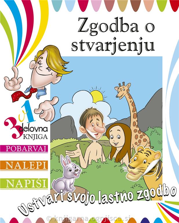 Nekakšen ustvarjalni zvezek, v katerem bo otrok lahko prebral prilagojeno svetopisemsko zgodbo o stvarjenju, pobarval risbe in nalepil nalepke. Na posameznih straneh bo lahko s svojimi besedami napisal zgodbo o stvarjenju in občudoval lepoto božjega stvarstva – od rastlin do živali.
