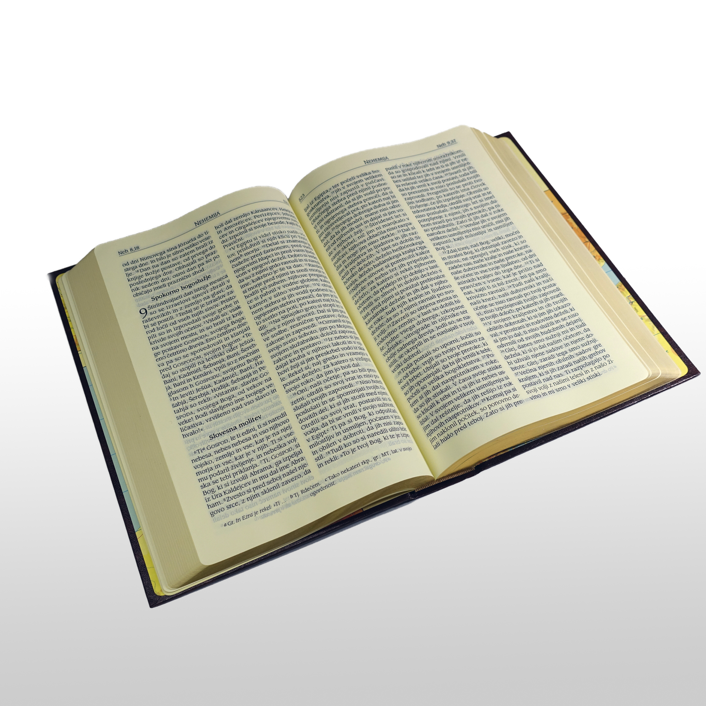 Povečani format osnovne izdaje SSP, v trdi vezavi. Zaradi večjih črk primerno za vsakogar, ki se trudi z branjem manjših formatov. Za bolj eleganten videz ima ob strani pozlačene liste. Vsebuje devterokanonične knjige.