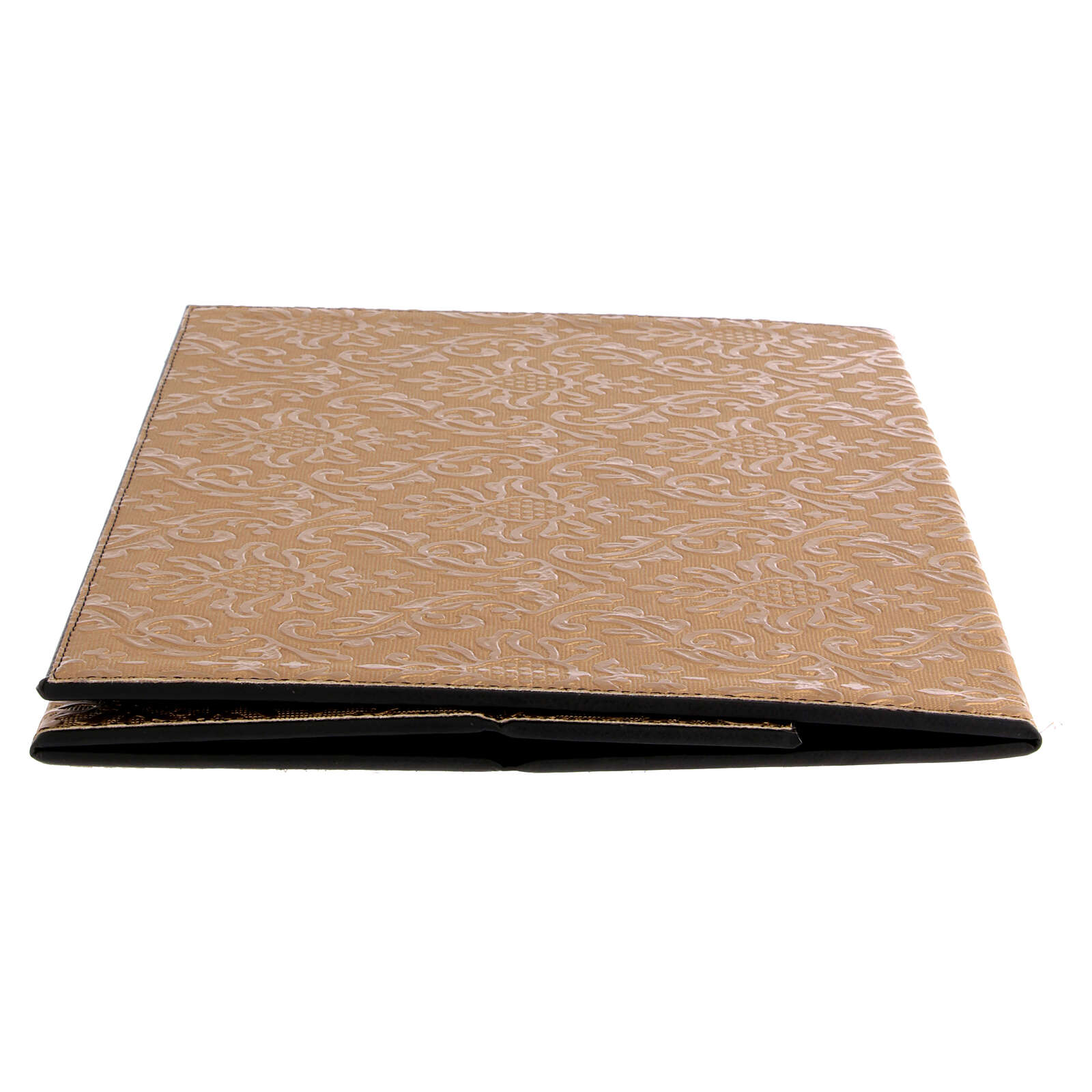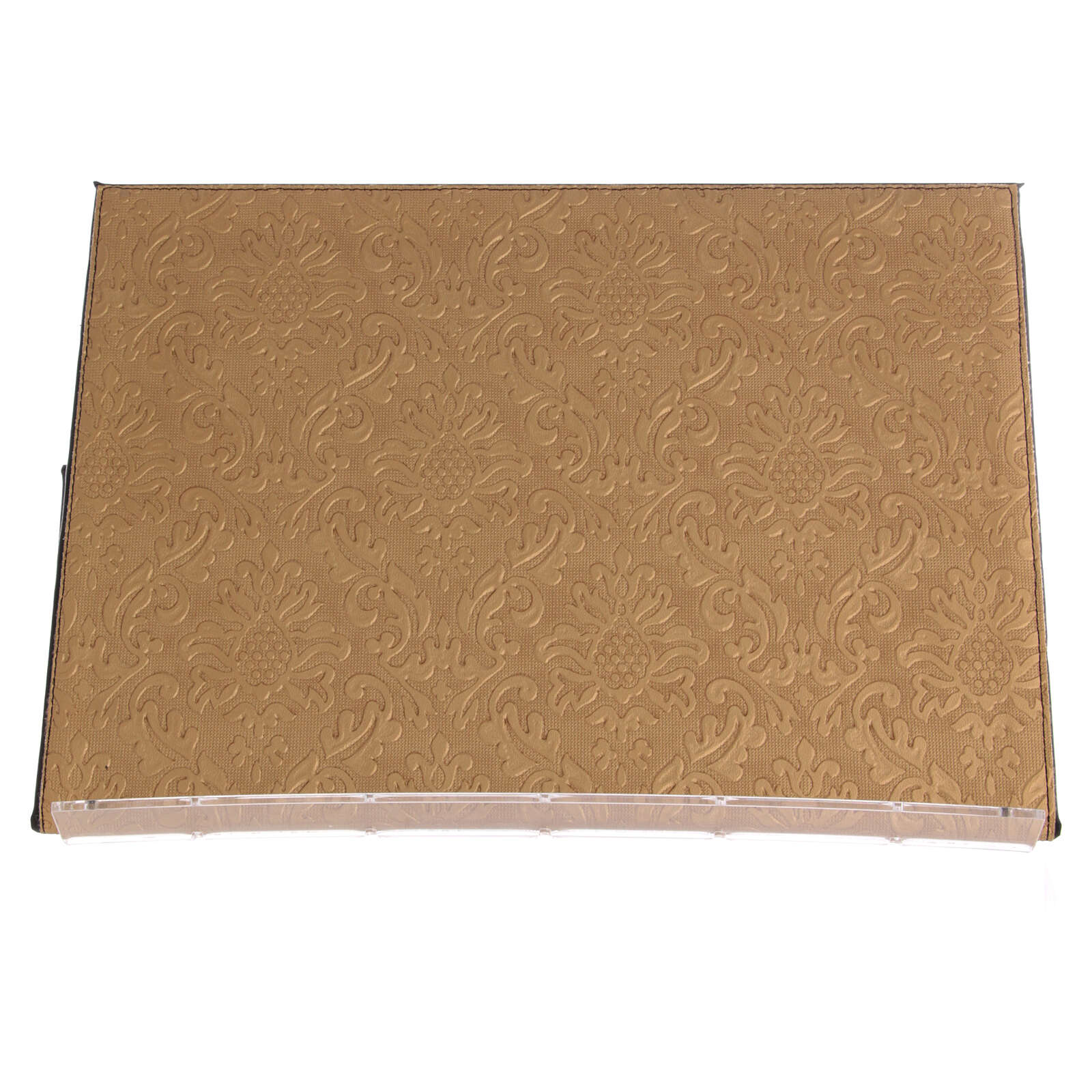 Stojalo za misal iz umetnega usnja z zlatim vzorcem in podstavkom iz plastike.