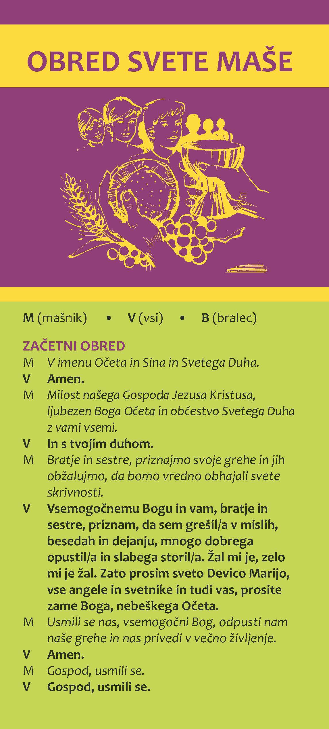 Zgibanka za lažje sledenje posameznim delom svete maše.