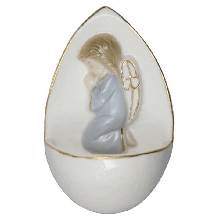 Kropilnik s podobo modrega angela v molitvi.