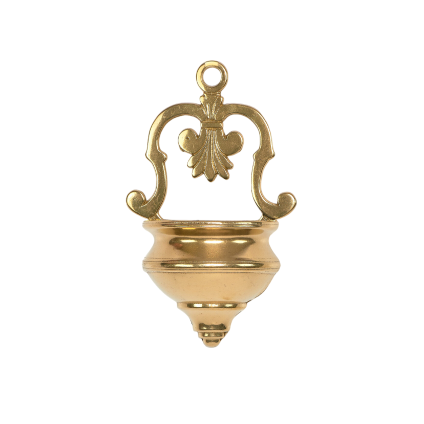 Kovinski stenski kropilnik v velikosti 17 cm. Narejen iz medenine.