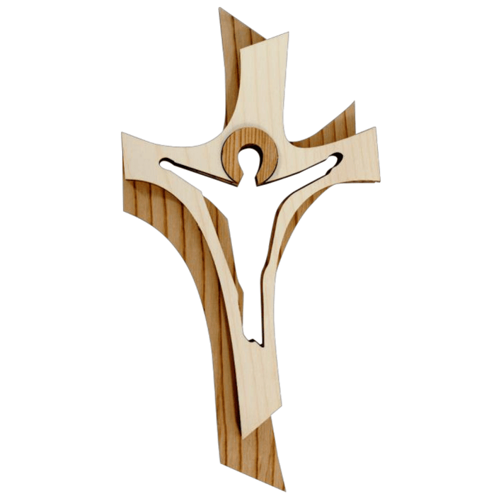 Moderen leseni križ v dveh barvah v velikosti 18 x 9,5 cm.
