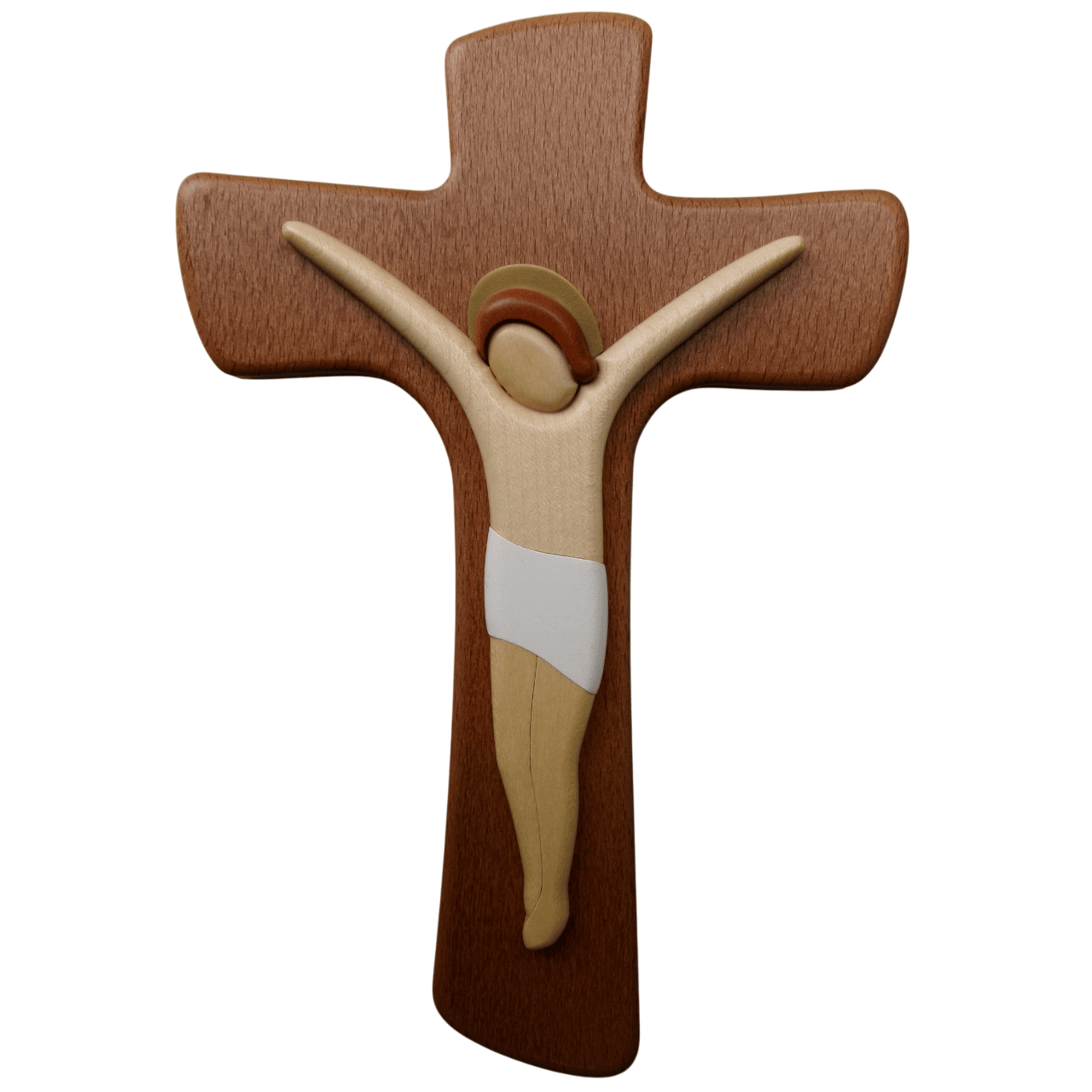 Lesen stenski križ v velikosti 22,5 cm z barvnim korpusom.
