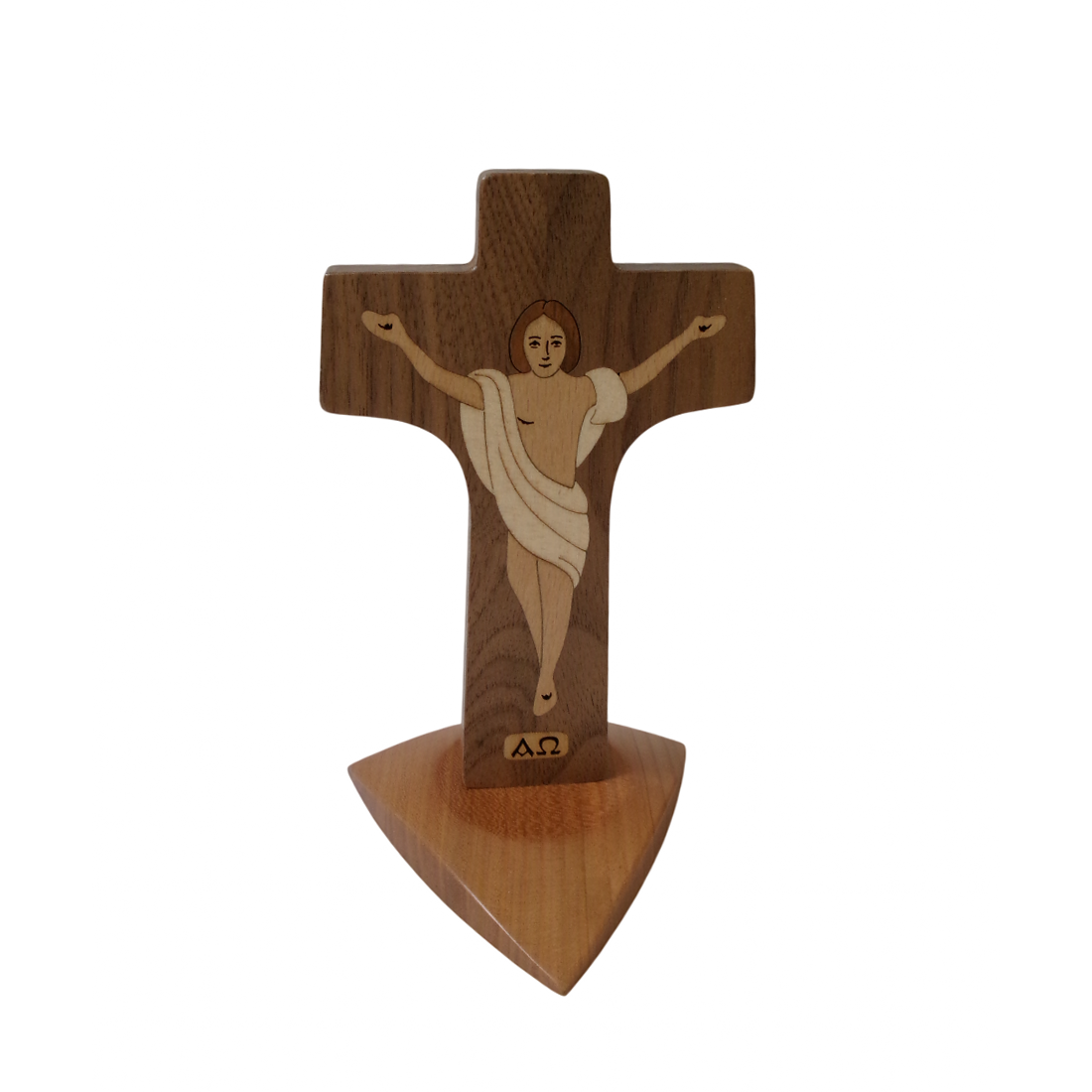 Lesen stoječ križ intarzija z dvema stranema – na eni je podoba mrtvega Kristusa, na drugi pa podoba Vstalega Kristusa. Križ je velik 15 cm.
