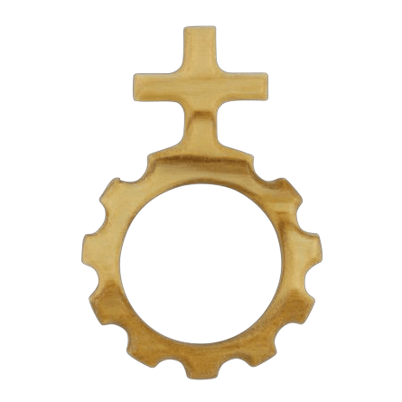 Lesena desetka v obliki prstana iz oljčnega lesa. Skupaj s križem je velik 4 cm.