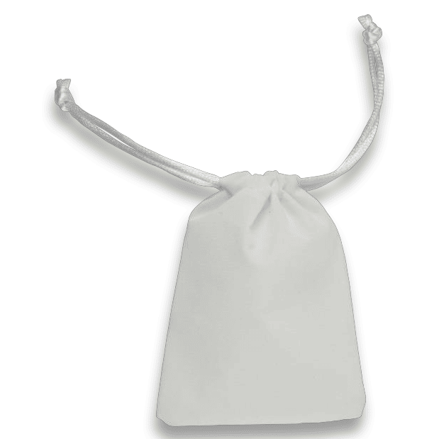 Bež mošnjiček za rožni venec iz velurja v velikosti 10 x 7,5 cm.