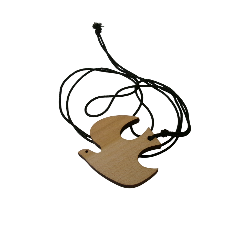 Obesek v obliki svetega duha velikosti 3 cm, na vrvici.