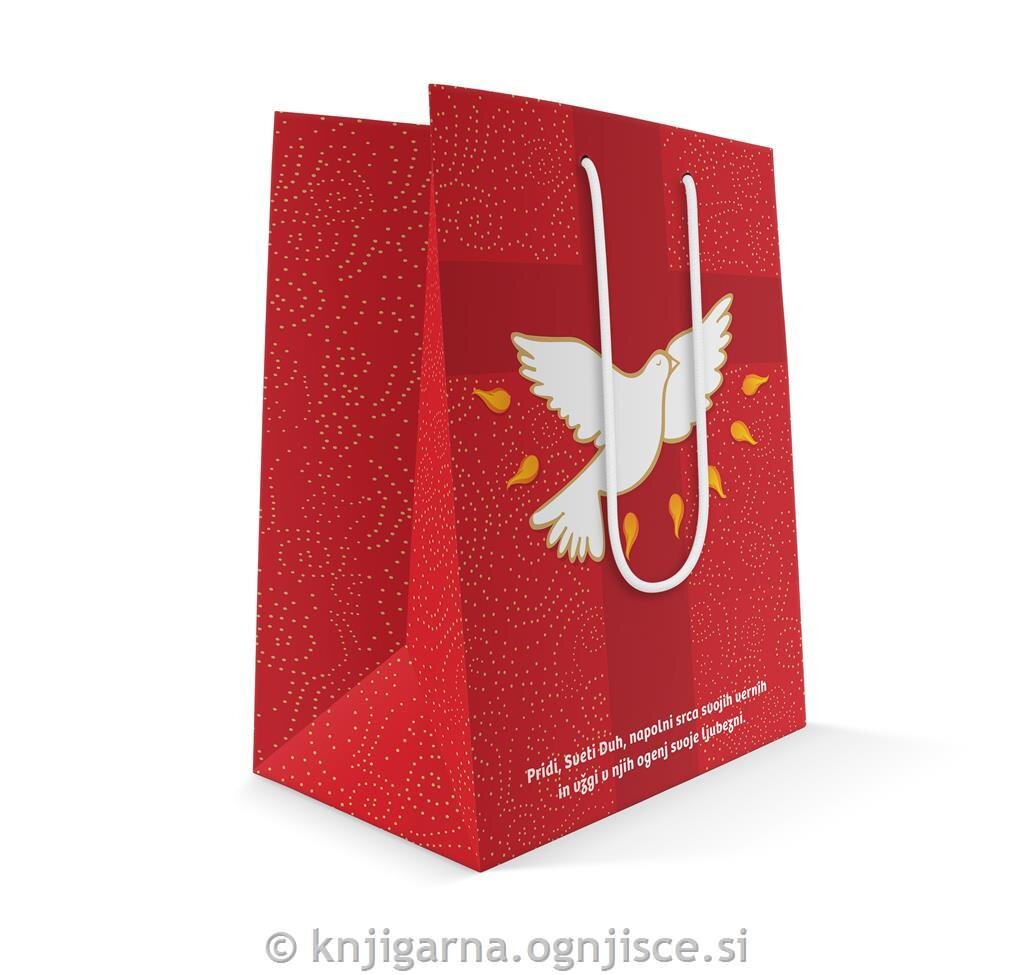 Vrečka je iz papirja z motivi svete birme.
