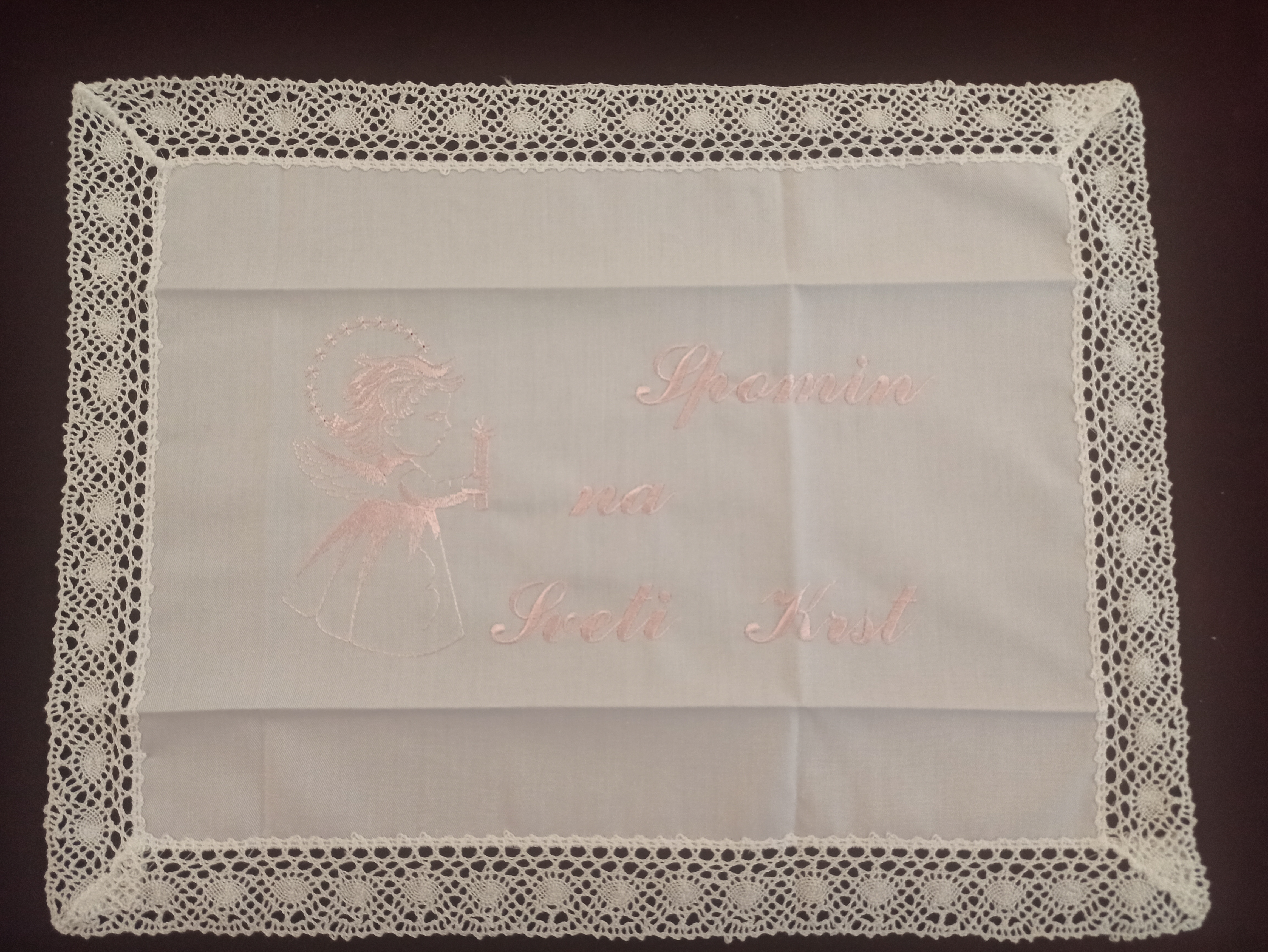 KRSTNI PRTIČEK Z MOTIVOM ANGELA V ROZA BARVI