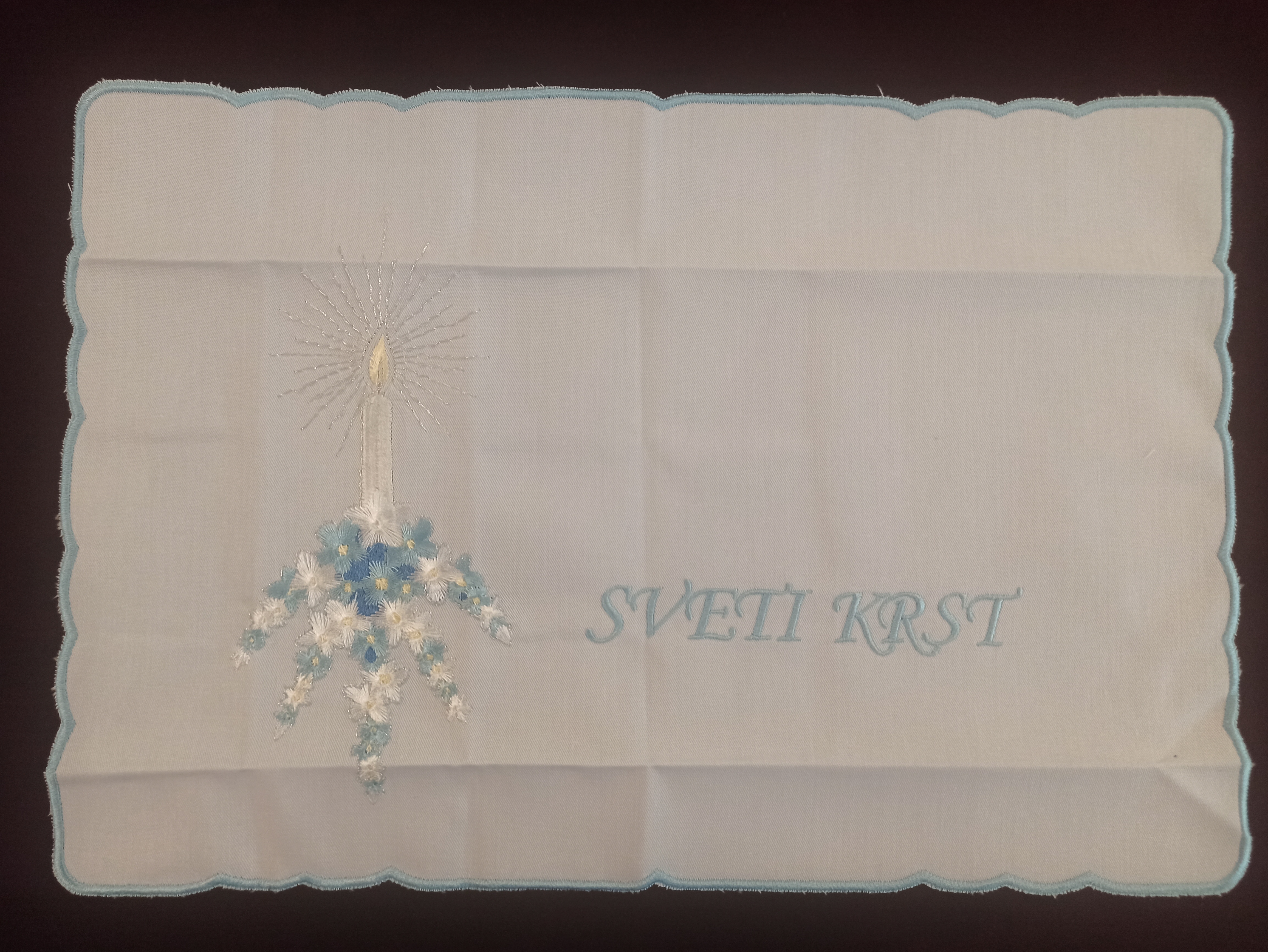 KRSTNI PRTIČEK Z MOTIVOM SVEČE V MODRI BARVI